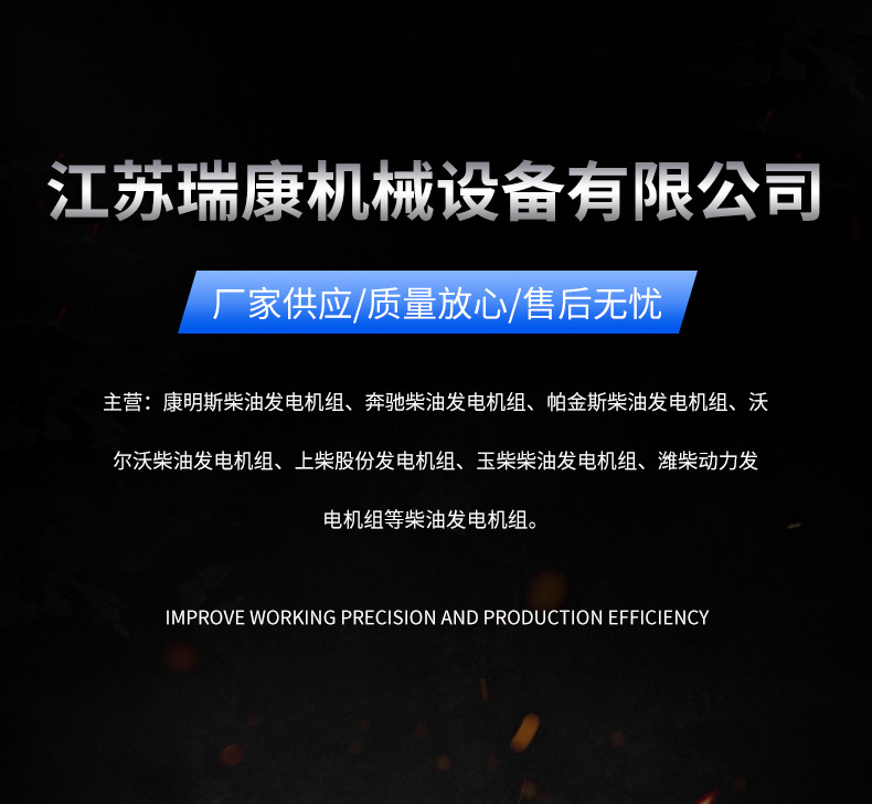 Jiangsu Ruikang Machinery Equipment Co., Ltd. is a company specializing in the production and processing of Cummins, Weichai Power, Shangchai Power, Yuchai, Perkins diesel generator sets and other products, with a complete and scientific quality management system. The integrity, strength and product quality of Jiangsu Ruikang Machinery Equipment Co., Ltd. are recognized by the industry. Welcome friends from all walks of life to visit, guidance and business negotiations.